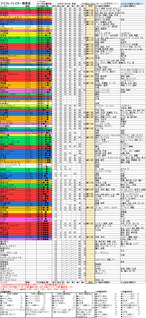 ライコレ COMBAT ファイターカードパワー数値表&攻略ガイド🥊ライコレ攻略中級編