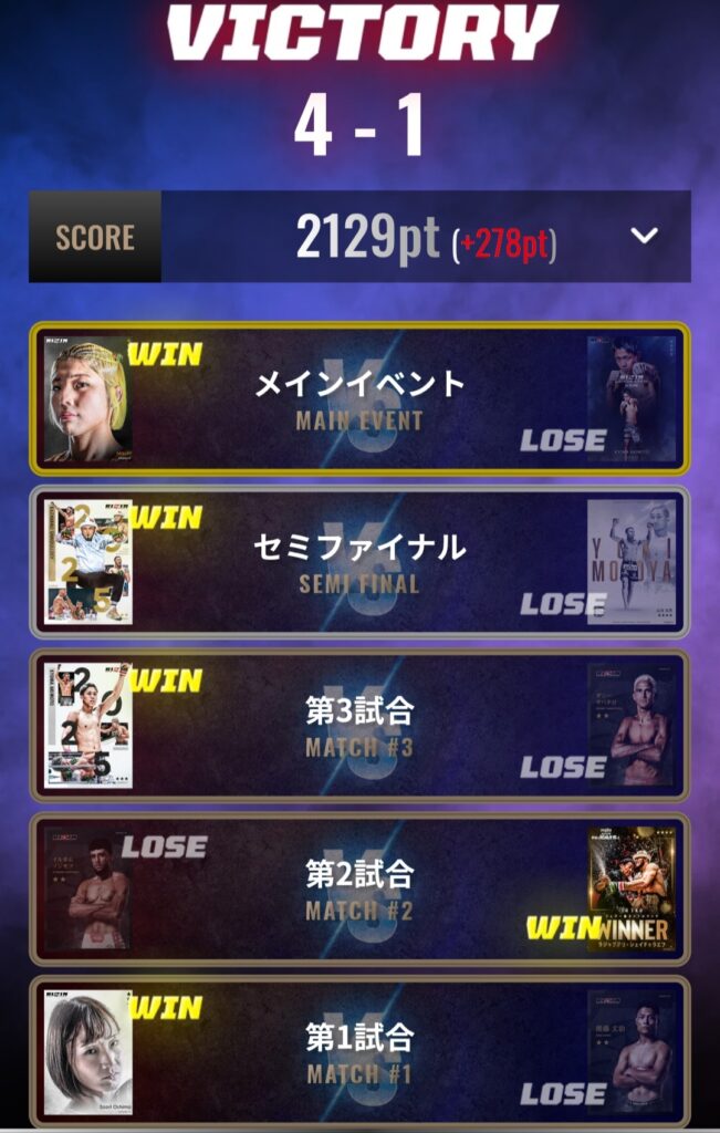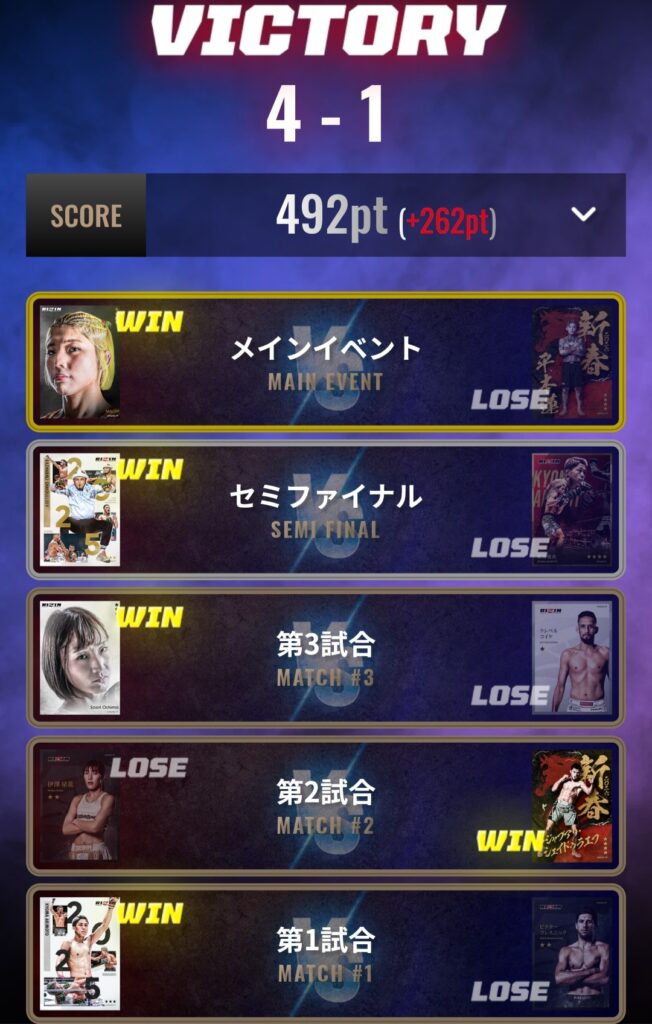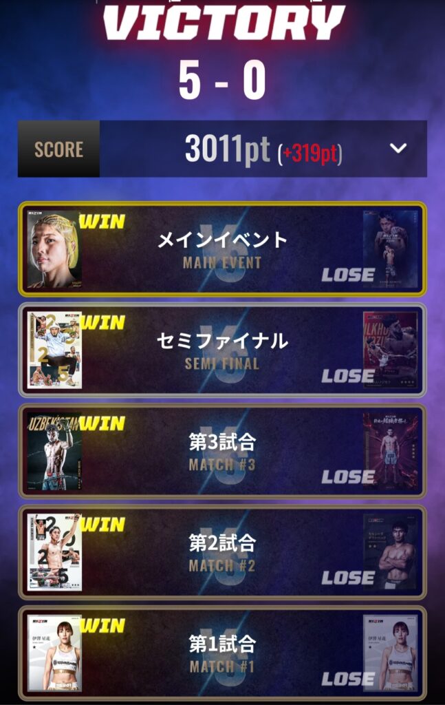 - COMBAT.23、24、27大会で全勝フィニッシュ
