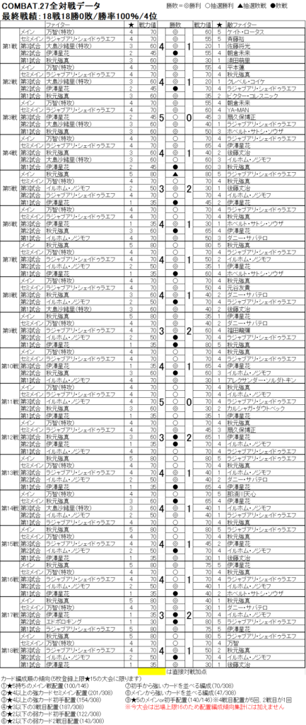 ④COMBAT.27 全18戦対戦データ