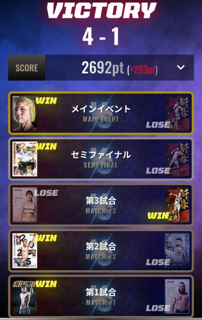 2日目以降は1戦ごとに勝利するとランキングは上がっていくため、ランキング反映される前に3戦連続で行いたい