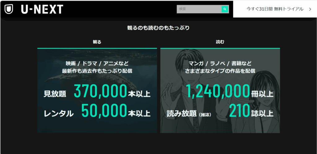 特に「最新作をいち早く見たい」「家族でシェアしてコスパ良く使いたい」「動画も雑誌もマンガも一つで完結させたい」という方に最適。この記事では U-NEXTの料金プラン、メリット・デメリット、他社サービスとの比較、実際に使った体験談、登録・解約方法 まで徹底解説していきます。