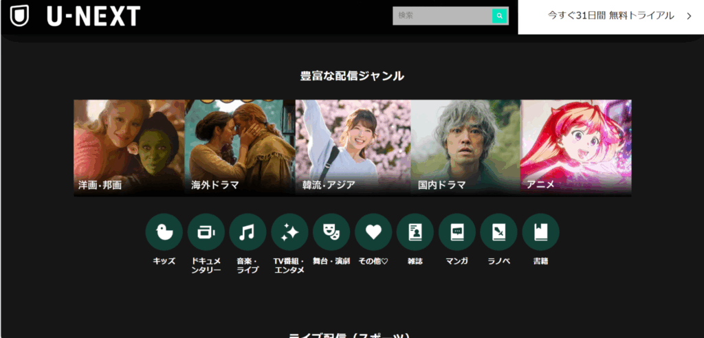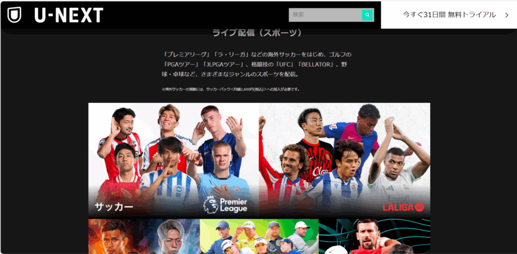 U-NEXTは映画やアニメだけでなく、格闘技、サッカー、舞台、音楽ライブ配信 も提供しています。特にスポーツ・格闘技好きには貴重な配信源であり、「動画配信サービス=映画・ドラマ」という枠を超えた体験ができます。