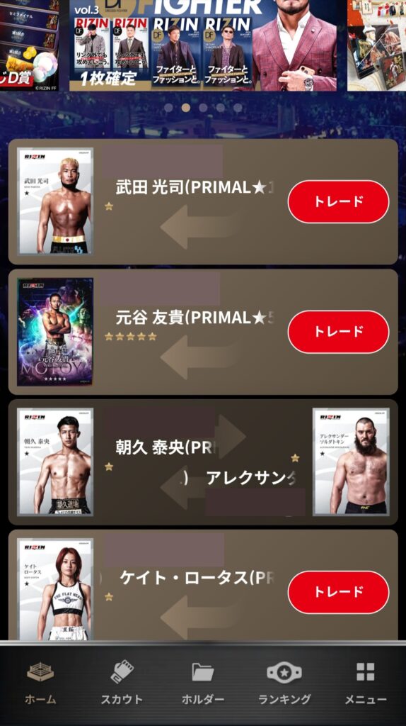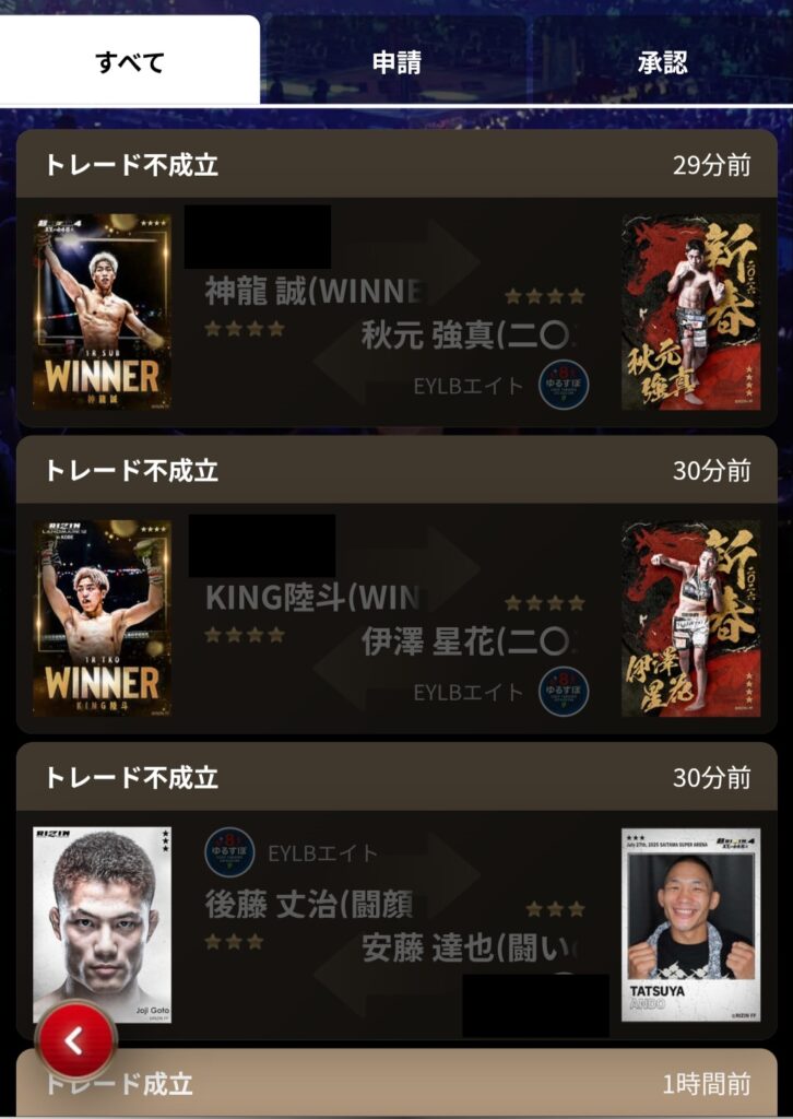 画面越しに操作していると忘れがちですが、自分がトレードしている相手はAIでも機械でもなく、画面越しにいるRIZINや格闘技が大好きな同じ仲間です