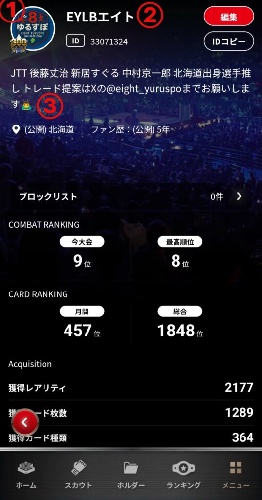 自己紹介欄にも推し選手の情報や求めているカードの情報などを載せているユーザーは多いです