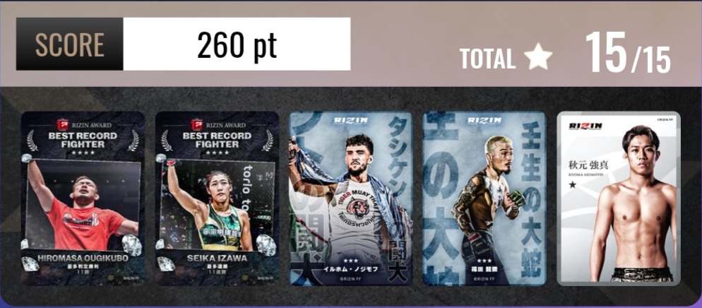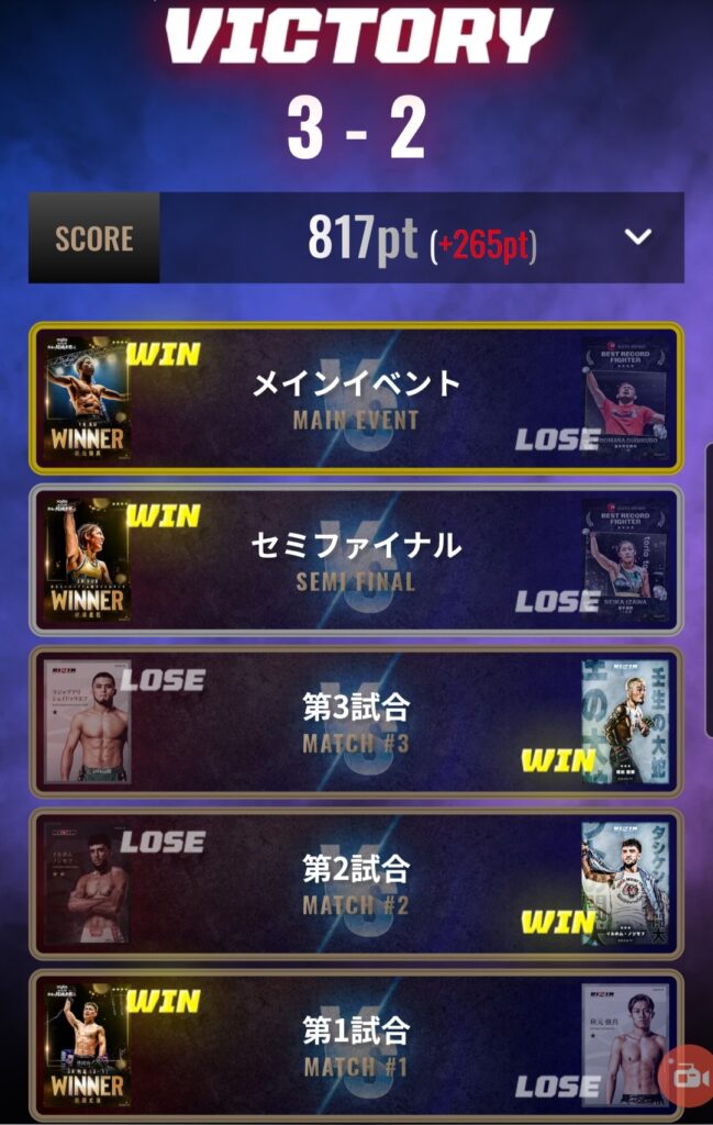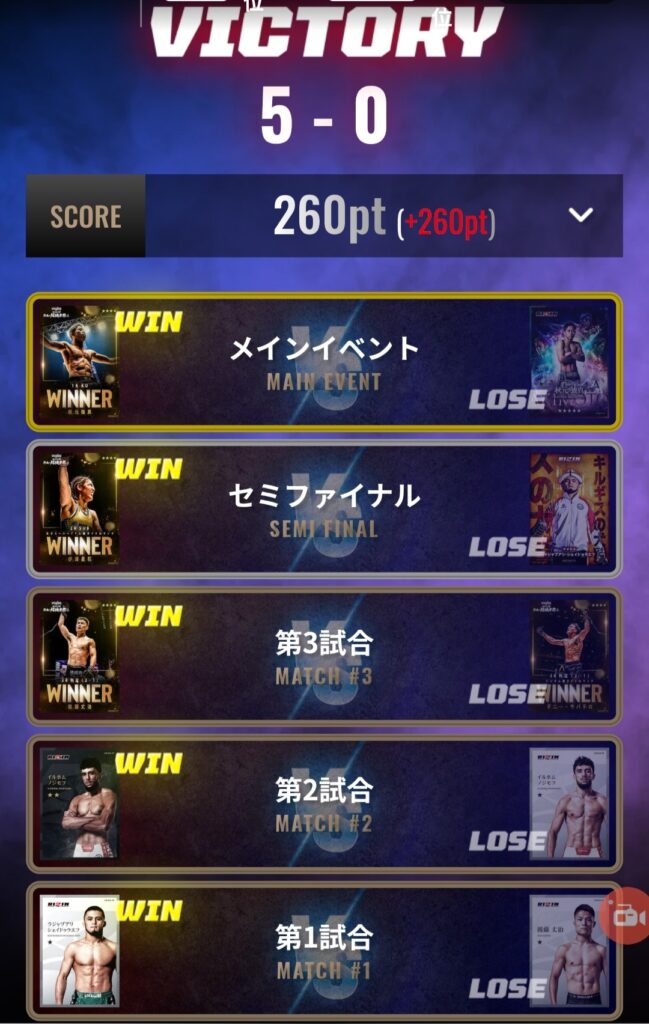 初戦で獲得できる最高ポイント、260ptを獲得💡