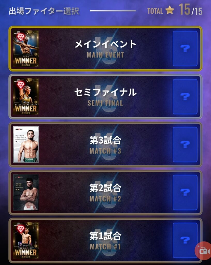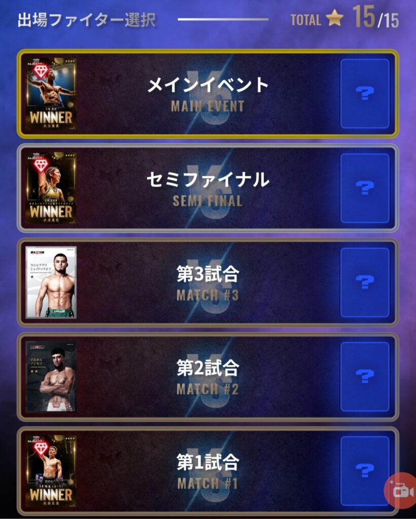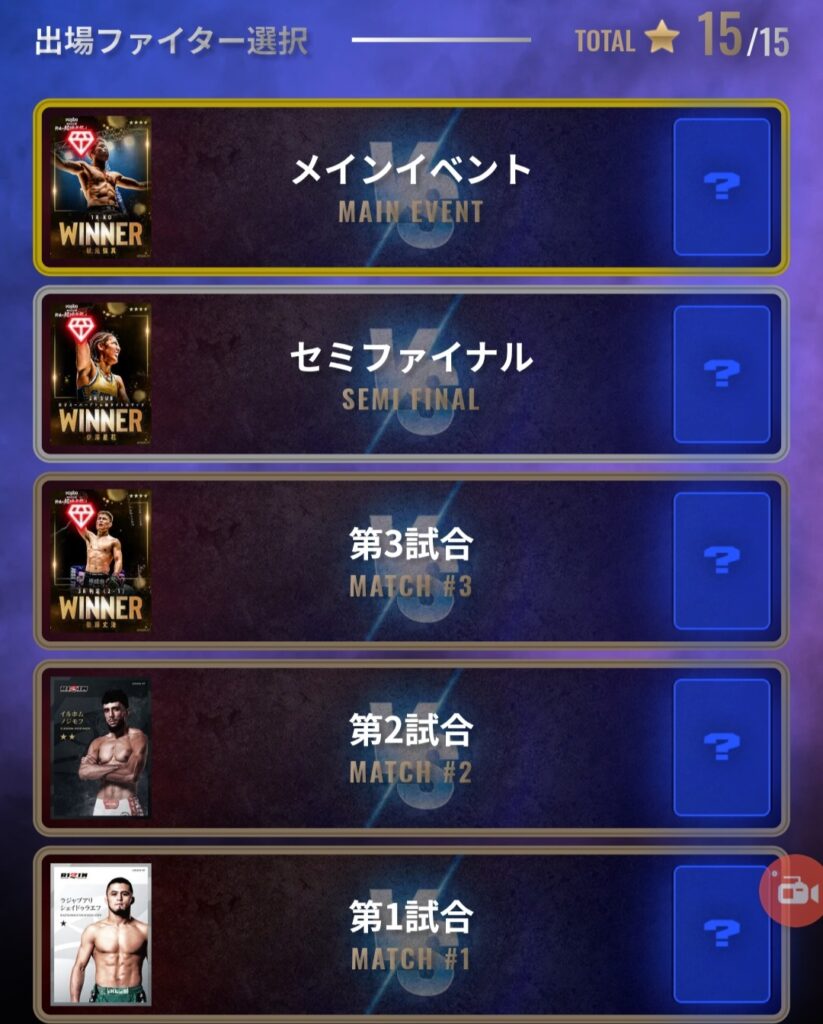 セミメインに伊澤、2、3戦目はどちらにしても相手★1が来ないと勝てないので適当に配置