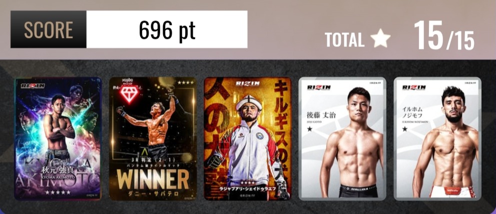 バンタム級王者になったサバテロ。44421で使用すれば21でノジモフ、シェイドゥラエフを使えるので弱カード対決での勝利を拾えるようになる