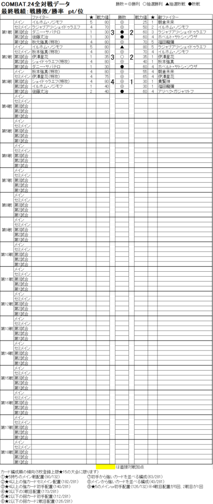 COMBAT.24を一覧表で全対戦振り返ります