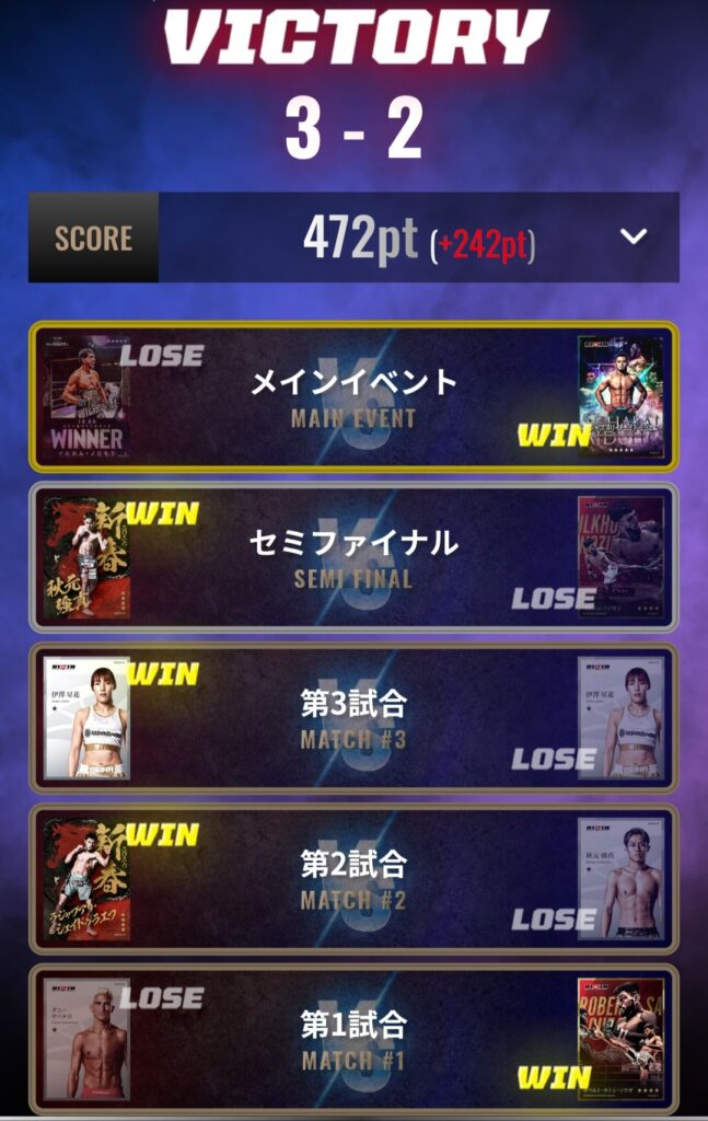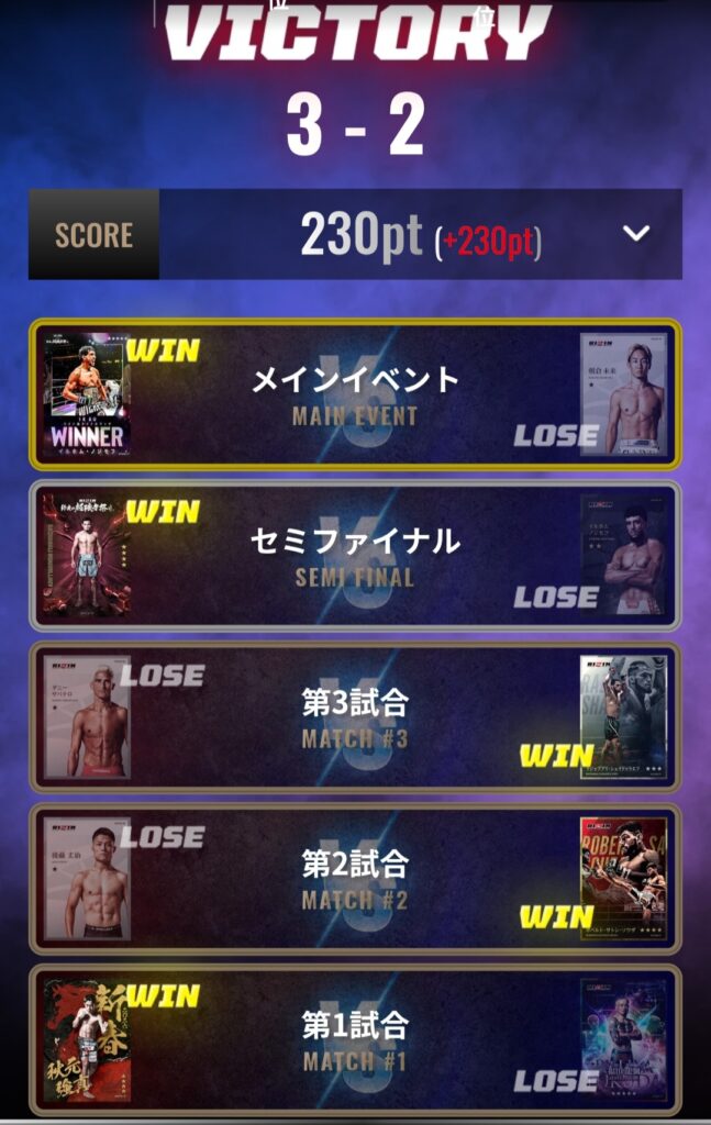 2日目以降は1戦ごとに勝利するとランキングは上がっていくため、ランキング反映される前に3戦連続で行いたい