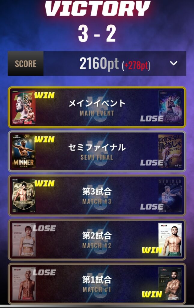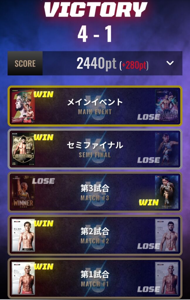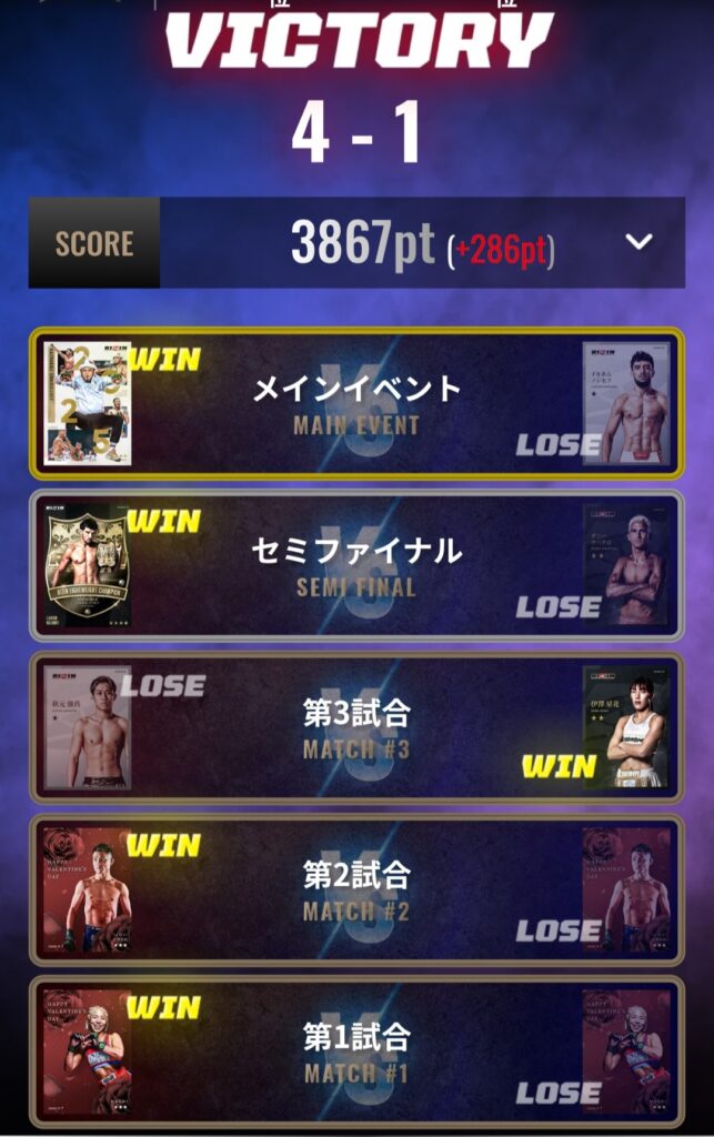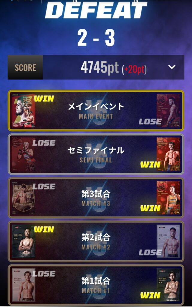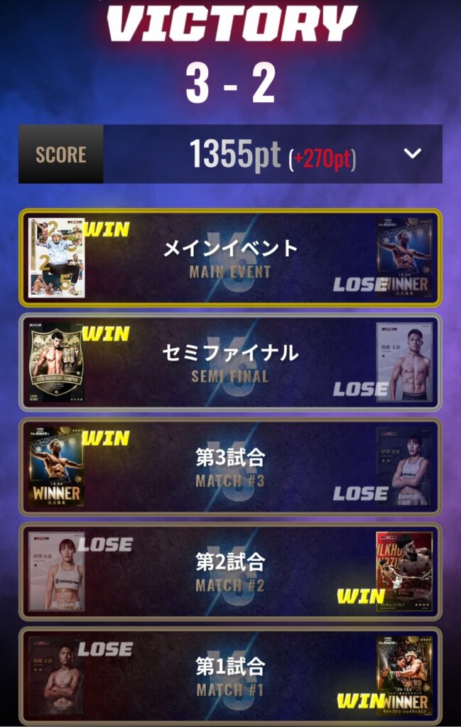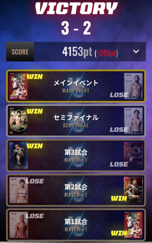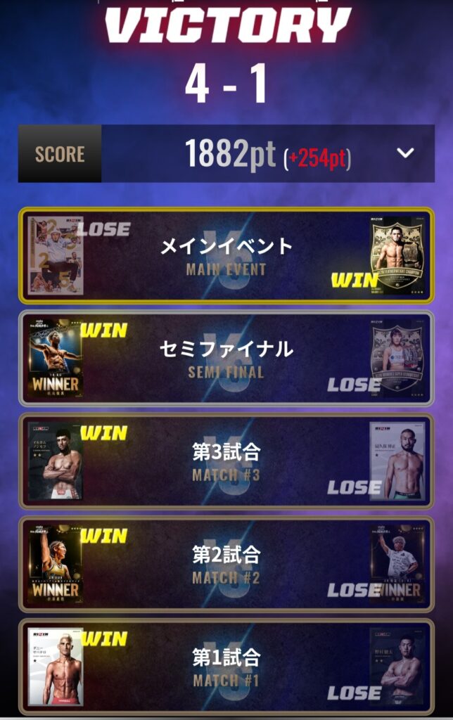 結果論★5を使ってれば全勝取れてたかもって感じ