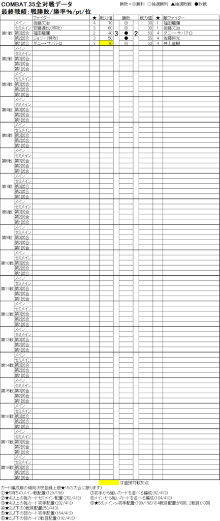 COMBAT.35を一覧表で全対戦振り返ります