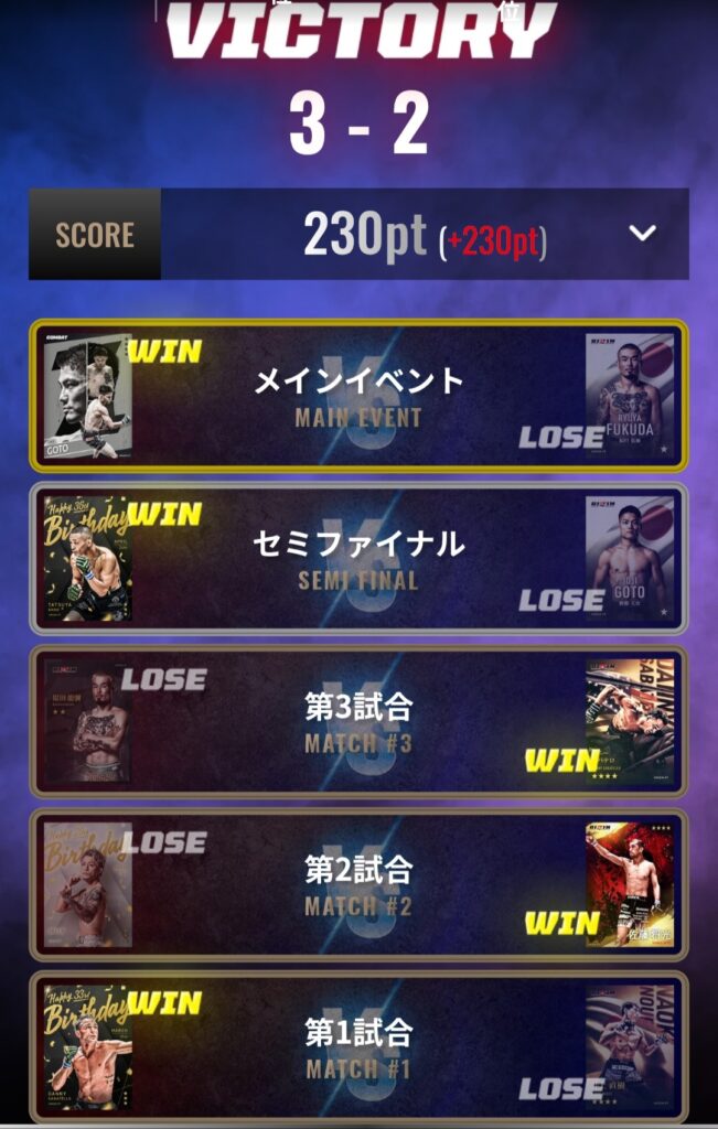 2日目以降は1戦ごとに勝利するとランキングは上がっていくため、ランキング反映される前に3戦連続で行いたい