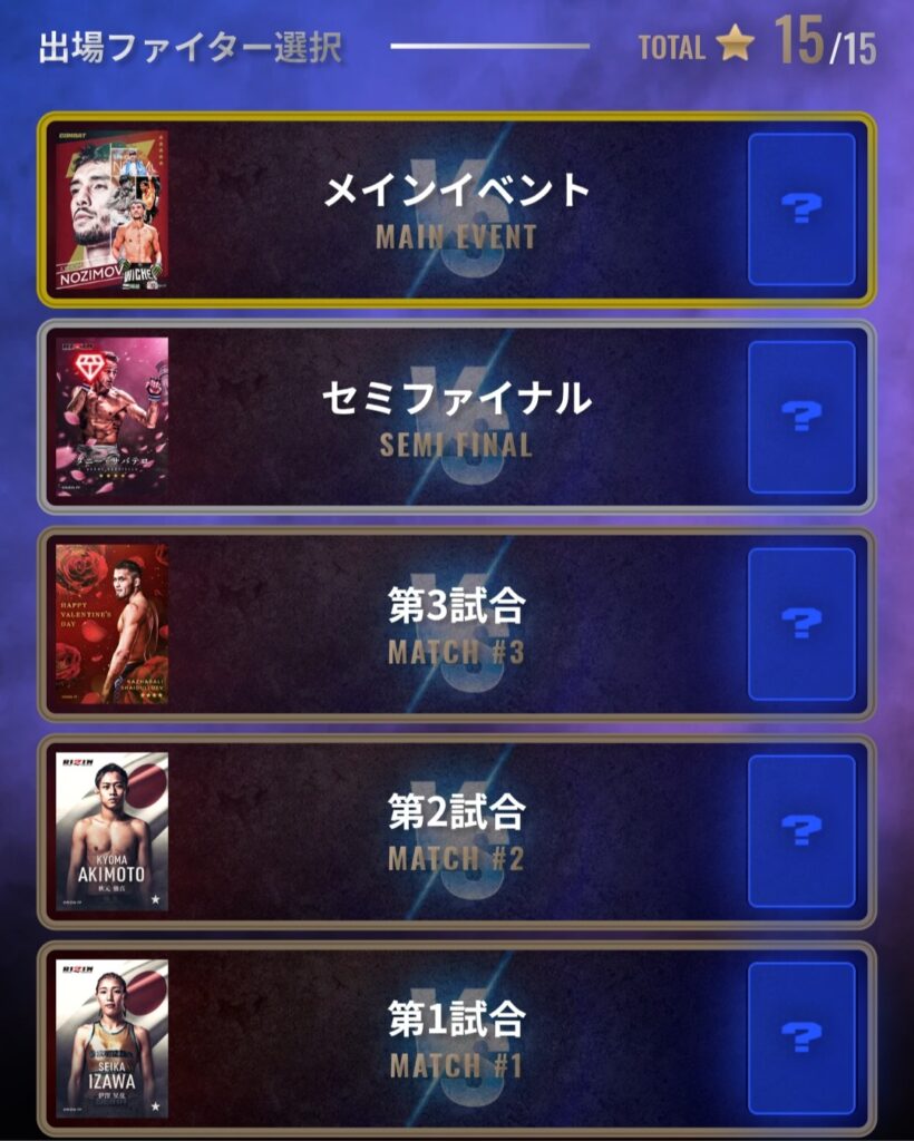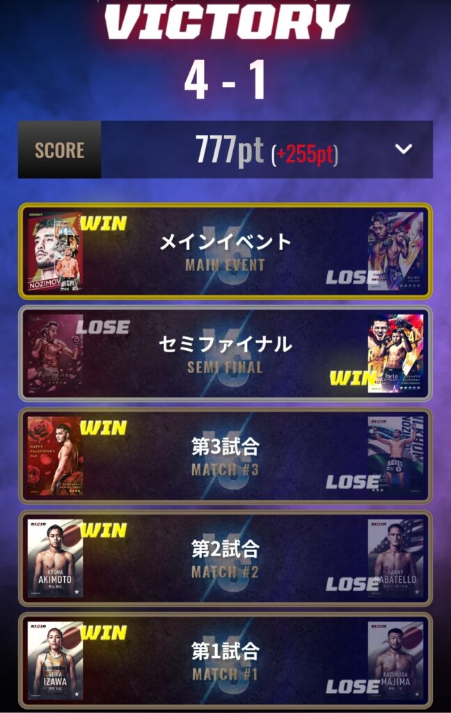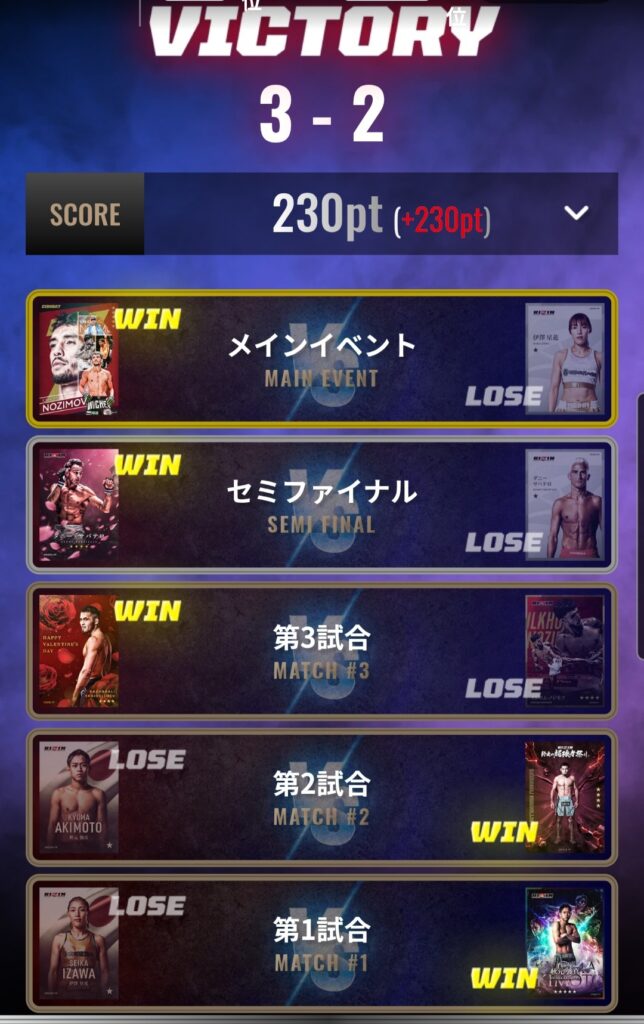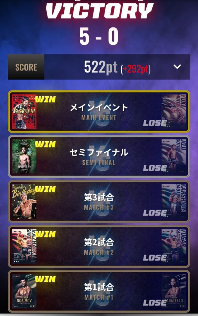 - COMBAT.23、24、27、32、34大会で全勝フィニッシュ