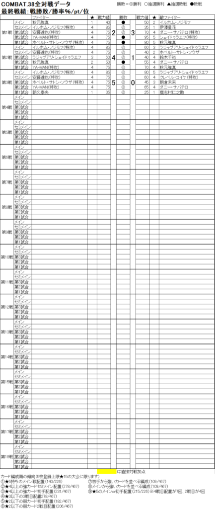 COMBAT.38を一覧表で全対戦振り返ります