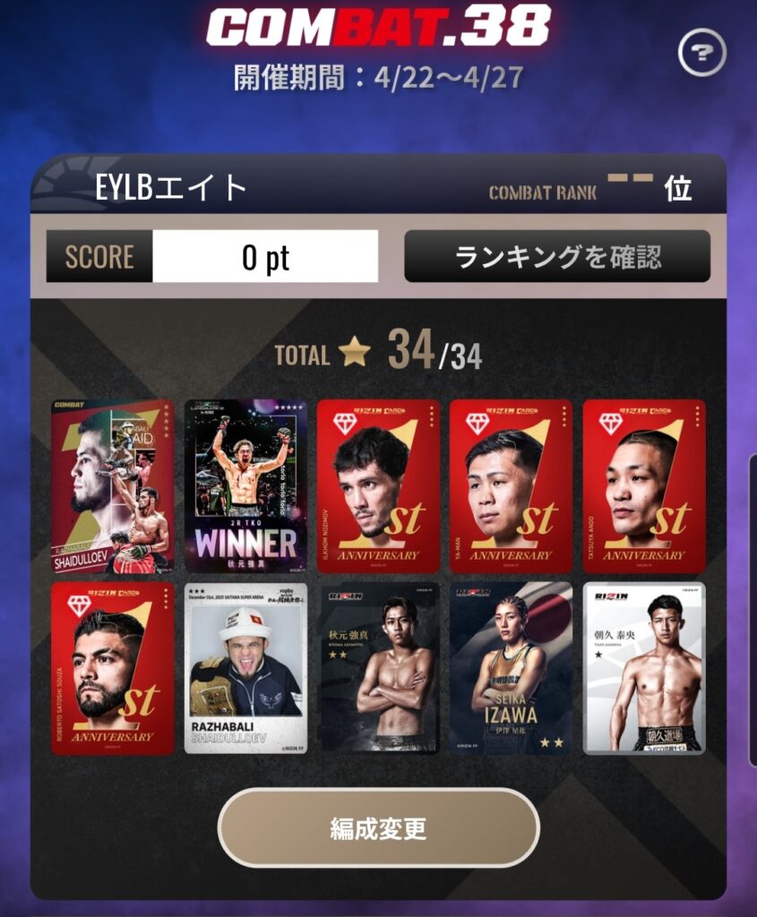 - COMBAT.10で上位200位の限定報酬カード★5サトシ入手に失敗、本格的にCOMBAT攻略に着手