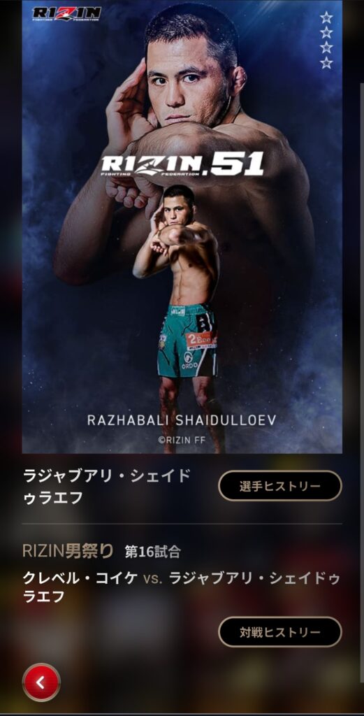 - イベント時は全力参加 → 限定カードは「その時だけ」のケースあり。特に各RIZIN大会の勝敗予想はポイントに応じて★3・★4の限定カードが手に入るので参加必須!